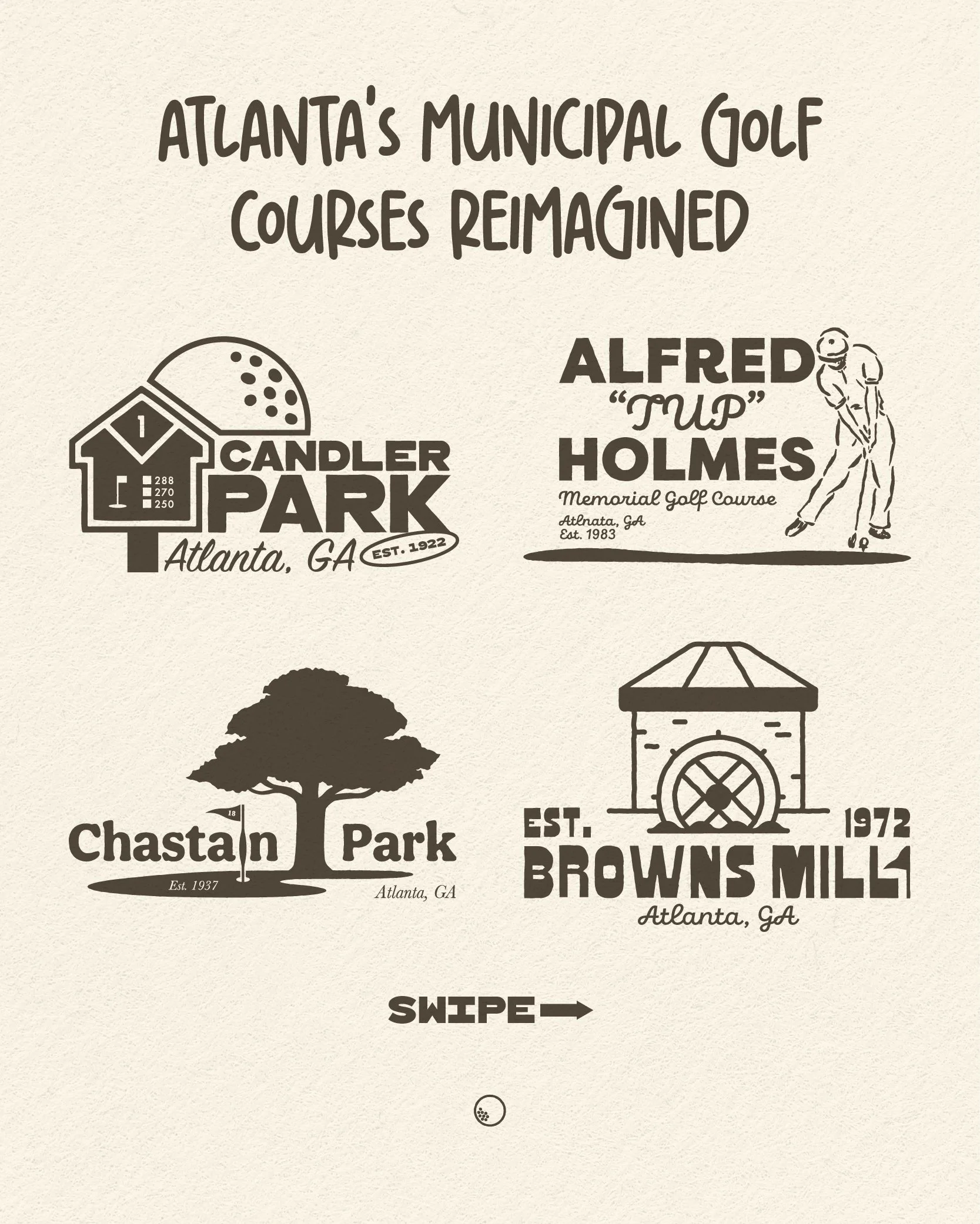 The Brief: Reimagine the visual identity for Atlanta’s four historic municipal golf courses: Candler Park, Chastain Park, Browns Mill, and Alfred 'Tup' Holmes.